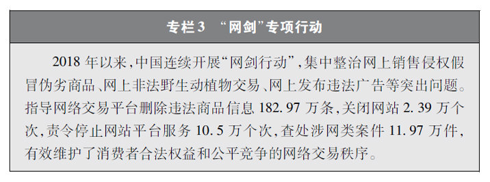 規(guī)范網(wǎng)絡(luò)交易活動。讓網(wǎng)絡(luò)交易活動在規(guī)范中運行,是營造良好網(wǎng)絡(luò)市場環(huán)境、維護廣大網(wǎng)絡(luò)交易主體權(quán)益的必然要求。開展“網(wǎng)劍行動”,集中治理網(wǎng)上銷售侵權(quán)假冒偽劣商品違法行為,重拳打擊網(wǎng)上非法交易野生動植物及其制品活動。嚴格落實網(wǎng)絡(luò)平臺責(zé)任,強化互聯(lián)網(wǎng)廣告監(jiān)管。針對“直播帶貨”、微店營銷等新型網(wǎng)絡(luò)交易形式,嚴管網(wǎng)絡(luò)招徠渠道,查處多家涉嫌違法網(wǎng)站和平臺用戶。針對網(wǎng)絡(luò)傳銷行為開展專項行動,對網(wǎng)絡(luò)購物型傳銷、網(wǎng)絡(luò)投資理財型傳銷、網(wǎng)絡(luò)創(chuàng)業(yè)型傳銷,實施重點打擊查處。通過一系列執(zhí)法,重點領(lǐng)域、重點主體、重點形式的網(wǎng)絡(luò)交易活動得到有效規(guī)范。