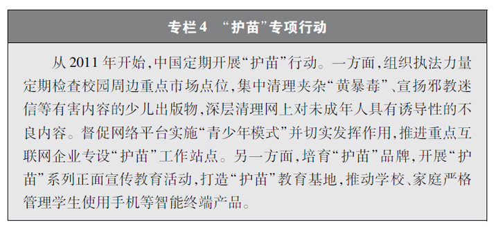 加強青少年網(wǎng)絡(luò)法治宣傳教育。青少年是祖國的未來、民族的希望。青少年網(wǎng)民在中國網(wǎng)民中的占比逐步增長。作為互聯(lián)網(wǎng)的“原住民”,青少年是網(wǎng)上學(xué)習(xí)、交流、生活最活躍的參與者、實踐者,其合法權(quán)益也更易受到網(wǎng)絡(luò)違法活動的侵害。中國從保護青少年網(wǎng)絡(luò)權(quán)益,促進青少年健康成長、全面發(fā)展出發(fā),遵循青少年身心發(fā)展規(guī)律,貼近青少年學(xué)習(xí)生活實際,聚焦網(wǎng)絡(luò)沉迷、網(wǎng)絡(luò)欺凌、網(wǎng)絡(luò)淫穢色情信息等重點問題,通過普法微綜藝、兒童普法話劇、網(wǎng)絡(luò)普法故事廣播、網(wǎng)絡(luò)普法云課堂、學(xué)法用法知識競賽、法治副校長進校園、編寫網(wǎng)絡(luò)普法讀本等生動活潑、豐富多彩的形式開展法治宣傳教育,逐步形成了政府、社會、學(xué)校、家庭相結(jié)合的法治宣傳教育格局,為提升青少年網(wǎng)民法治意識和網(wǎng)絡(luò)安全素養(yǎng)提供了全面保障。